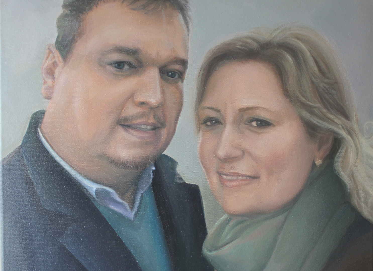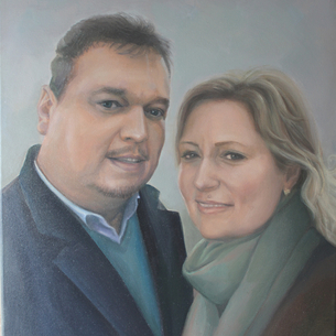 A portré fakeretre feszített alapozott vászonra készül olaj vagy akrilfestékkel. Az elkészült portrét lelakkozom és száradás után vastag kartonok közé helyezve csomagolom be, ami biztos védelmet jelent a szállítás során.